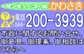 川崎市の市政に関するお問い合わせ、御意見、御相談などは川崎市総合コンタクトセンター 「サンキューコールかわさき」がお答えします。